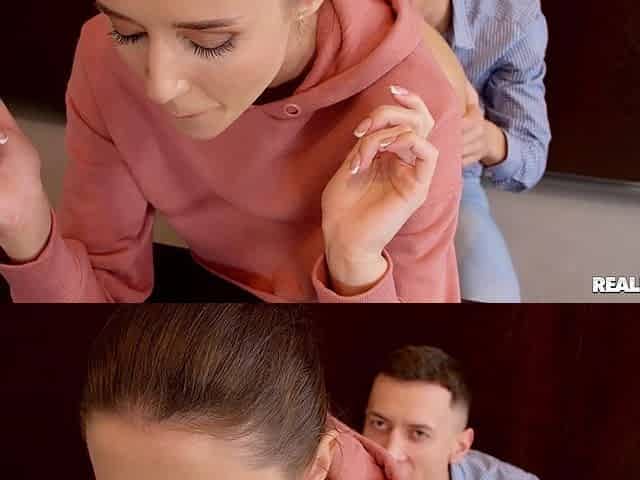 STUCK4K. Guests are about to come but dude screws cutie's trimmed snatch