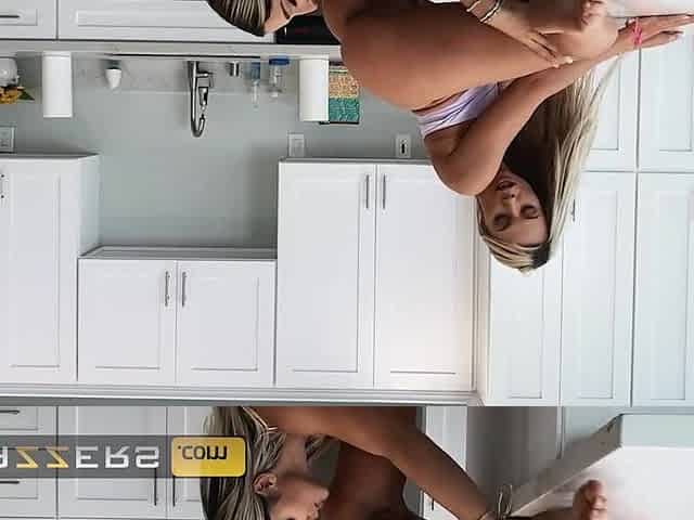 LezKiss Sexy blondes kissing and having sex on kitchen top