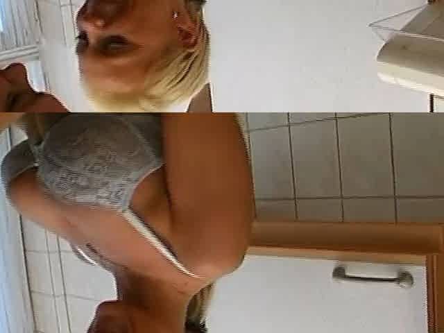 German blonde with an amazing body is fucked in the kitchen