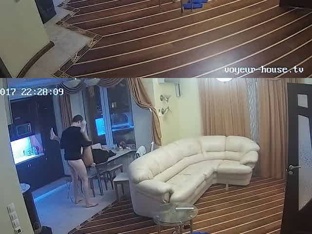 Sexy brunette midnight hot sex on the kitchen table hidden cam