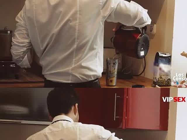Wife of one old guy fucks handsome young plumber right in the kitchen