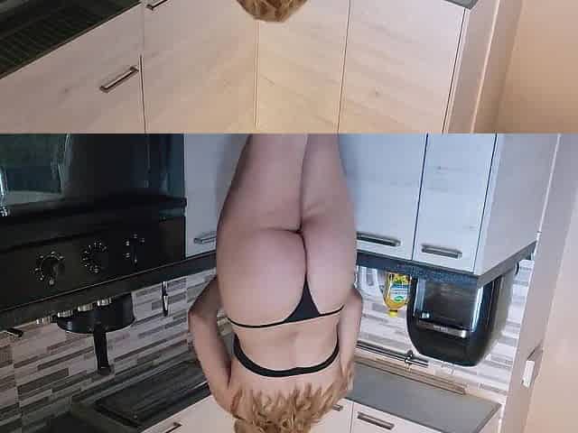 Naughty Girl in the Kitchen Likes Lingerie