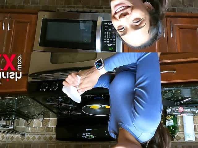 Big pussy lip step mom shaking ass at kitchen naked