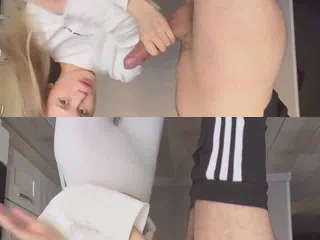 Handjob Amateur Mature On Knees Jerking In The Kitchen