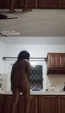 Hairy girl nice ass naked in her kitchen voyeur