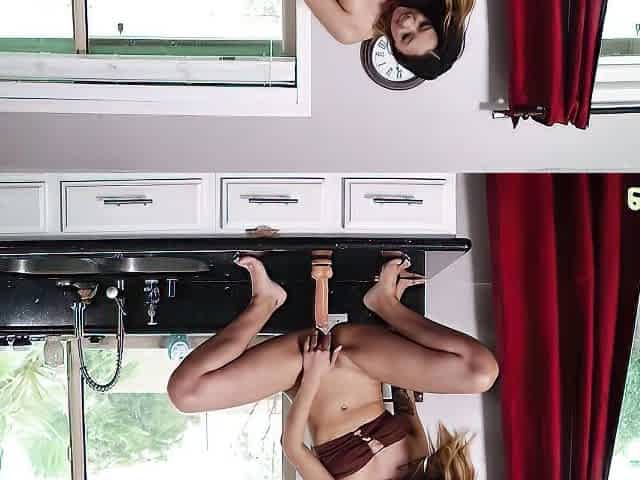 The girl was cleaning the kitchen, but a huge dildo ruined all plans.