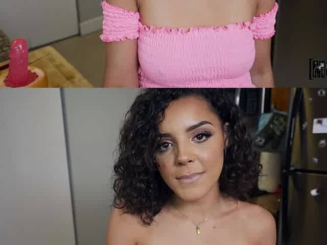 Shy black-haired teen Ashlynn Taylor explores taboo virtual kitchen pleasures