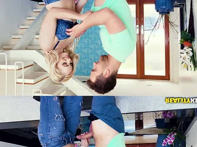Gorgeous blonde housewife hardcore anal pounding in kitchen