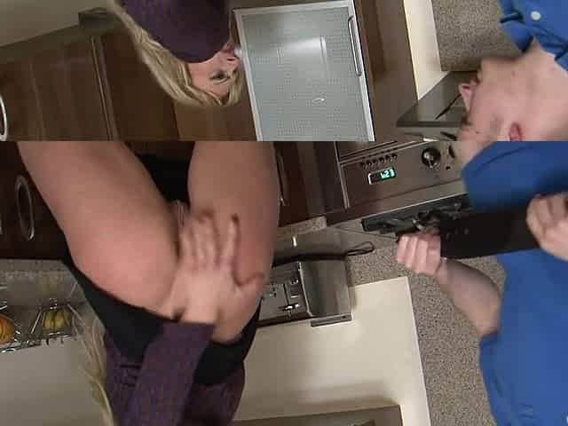 Crazy blonde chick spreads her legs to get fucked in the kitchen
