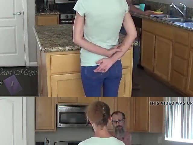 Aunty Judy is masturbating in the kitchen and trying not to groan also loudly whilst cumming
