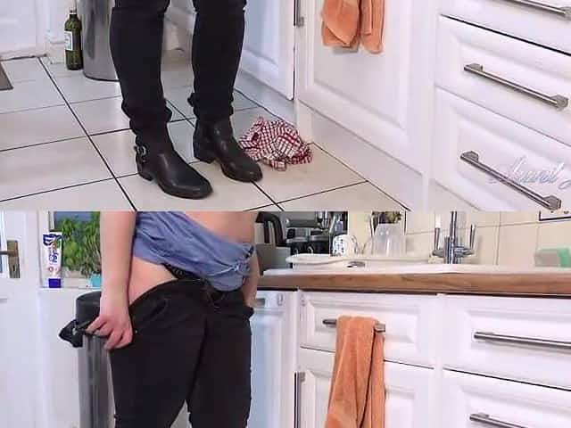 Aunty Judy is masturbating in the kitchen and trying not to groan also loudly whilst cumming