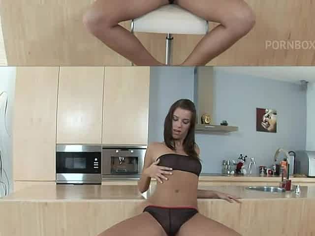 Solo climax in the kitchen
