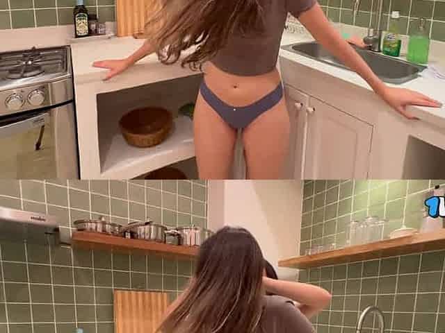 Sexy Stripping Leggings Top Bra and Knickers in the Kitchen
