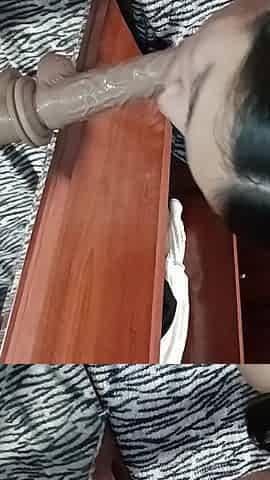 A Korean Woman Practices Blowjob in Front of a Mirror