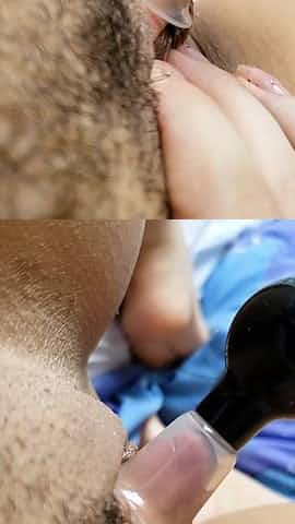 Lara Brooks milking in her gf amateur ass and eating her hairy cunt - lactation and lesbian fetish
