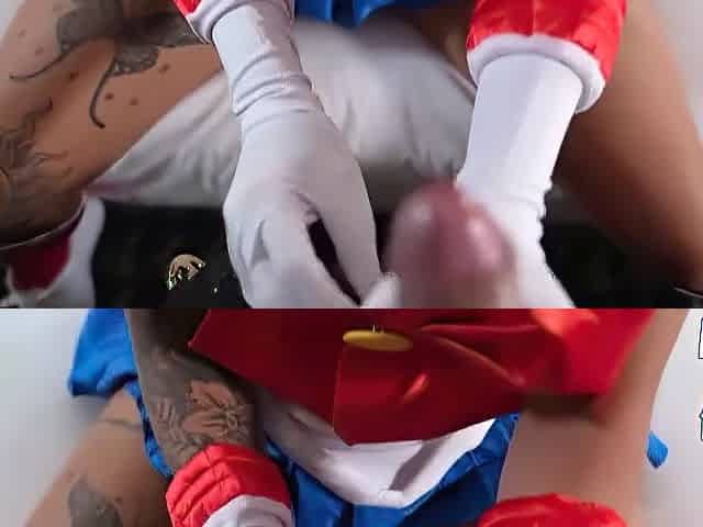 Knob loving, Black lady clothed up as Sailor Moon is eagerly sucking a large, white shlong