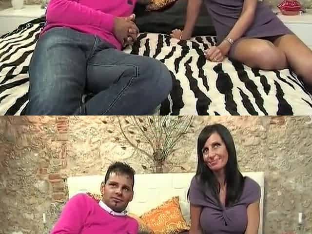 Sexy big tits dominant mature lady having sex with a teeny.
