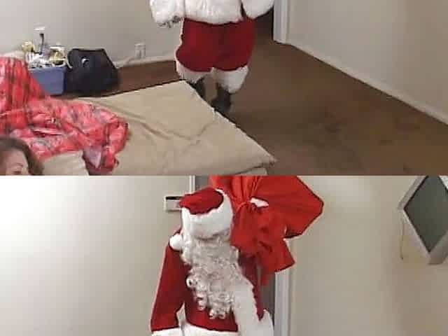 Big ass mature lady sucks and fucks a fat santa's cock on the sofa