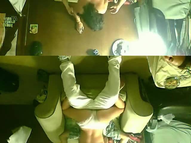 Swinger couples enjoy a lap dance class given by sexy blonde babe.