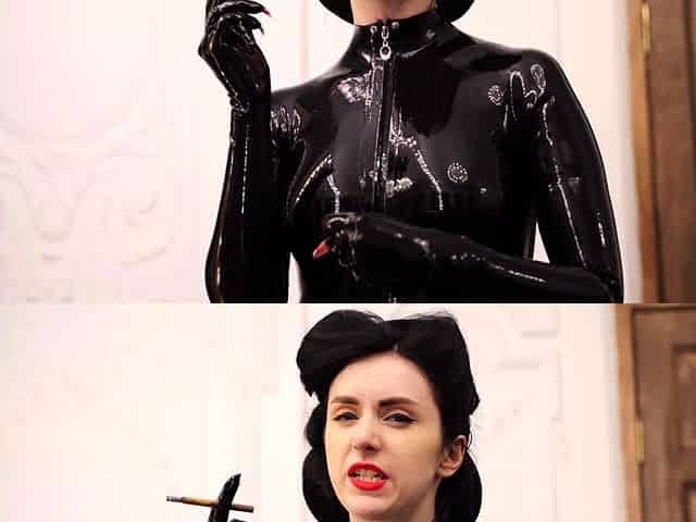 Sapphire Gets Out Her Fetish Latex Gear and Masturbates Solo with a Glass Dildo