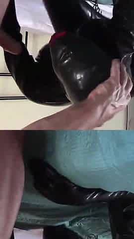 LATEX BOOTS AN CUNT VIBE IN THE WASHROOM