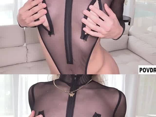 Antonia Jay Black Sheer Dress With Black Glossy Legwear & Xtra Special Vibrator Treat - 8k Vr
