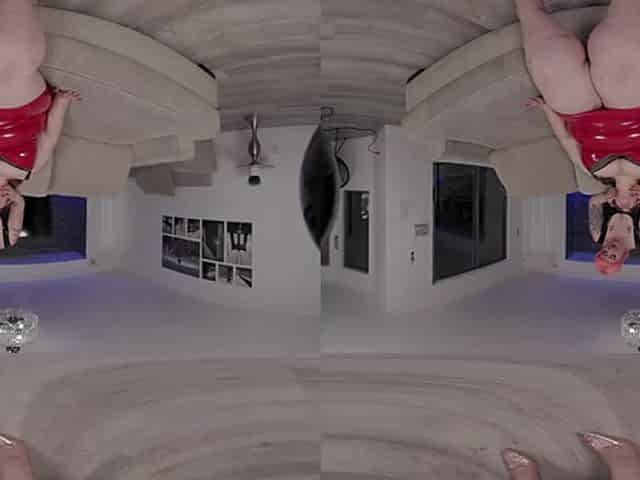 Louisa Lu Red Party Dress With Black Crotchless Legwear & Red Boots Joi Treat - 8k Vr