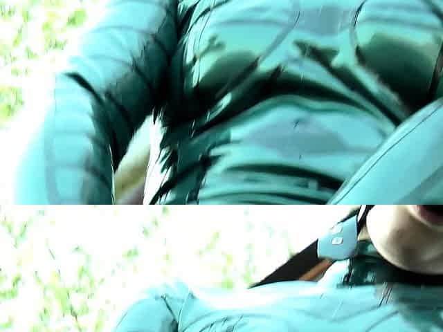 Red XXX Masturbating in Her Sexy Blue Latex Dress