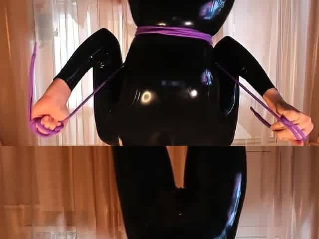 Gloved Handjob in Shiny Pantyhose Catsuit