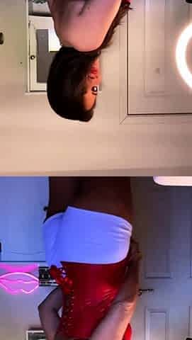 Red XXX shows off in her blue latex dress