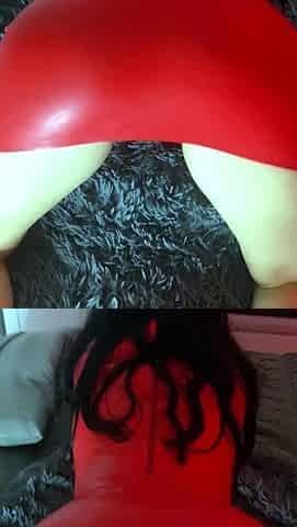 Double climax tugjob with red lengthy latex gloves and twat teasing