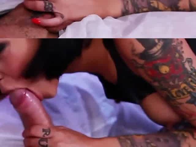 Arson Leigh In Tattooed Stunner Extracts Warm Cum Through Blowjobs