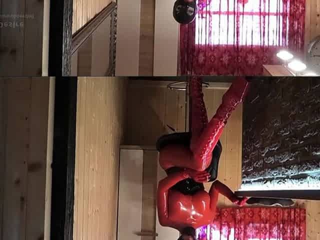 Antonia Jay In Red & Black Latex Dress Down Tease