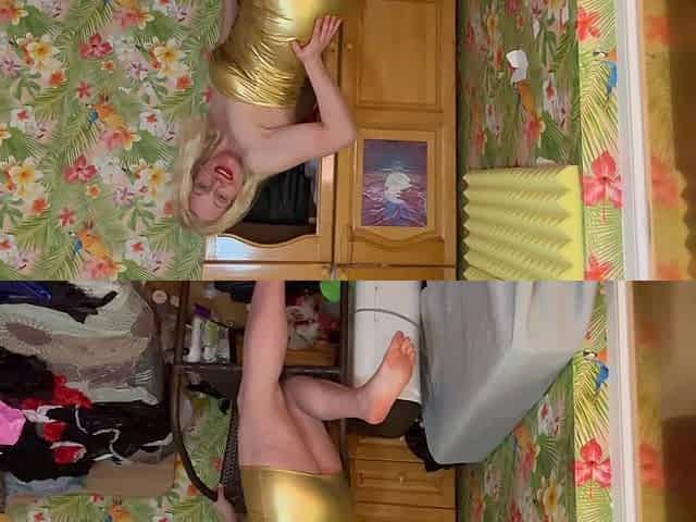 Latex slut solo anal masturbation