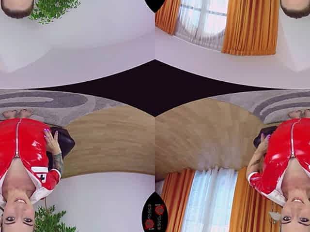 Latex lezdom nurse strapon anal fucks sub in the infirmary