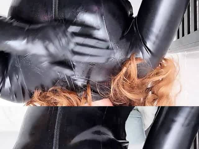 Girl in Latex Fuck Her Husband's Ass with Fingers and Gives Professional Blowjobs