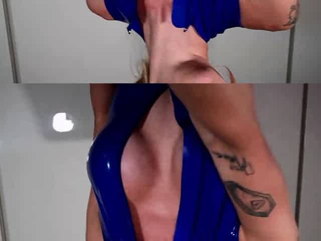Kinky natural blonde masturbates in latex fetish video