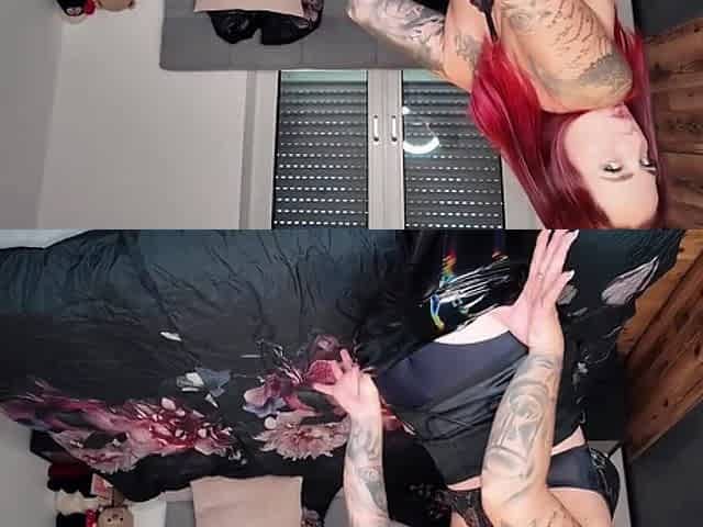 Latex Fantasy - Big Tits Redhead with Tattoos Handjob and Fucking