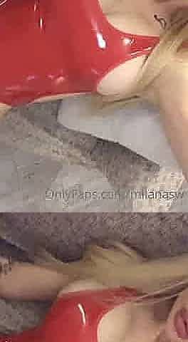 two women fetish latex asslicking and anal mff