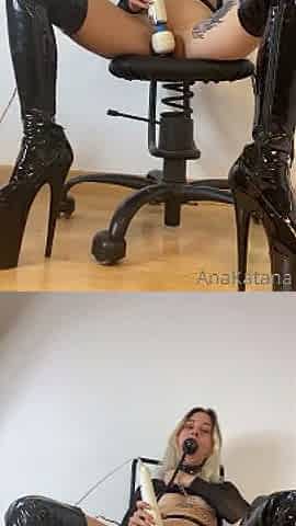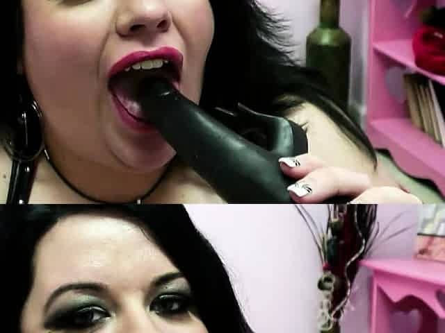 Latex Slut Gapes Her Ass On Huge Anal Dildos
