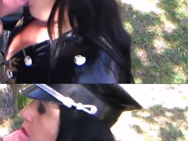 Im Wetlook outfit geblasen, von hinten gefickt vollgespritzt