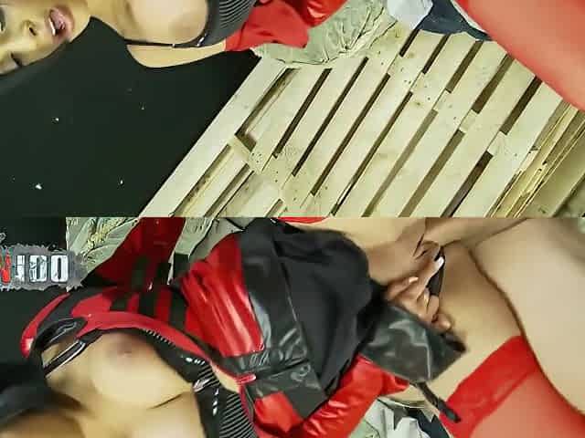 Ryan Reid looks incredible in latex in this anal IR FFM