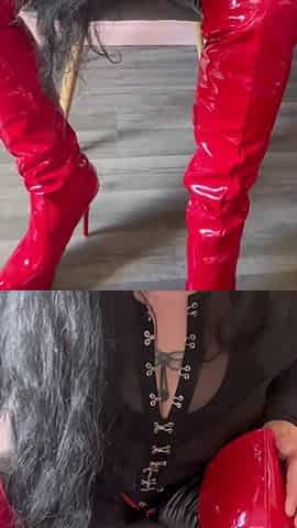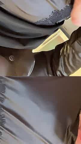 Lola sissy wearing ebony latex and ebony boots cumming on the sofa