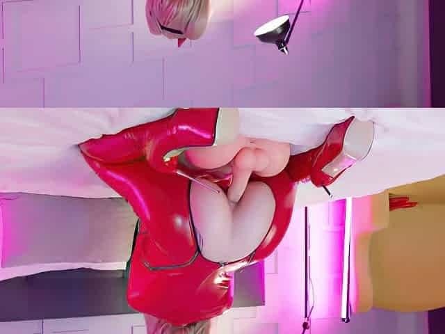 Sexy blonde in latex dress big black dildo penetrated