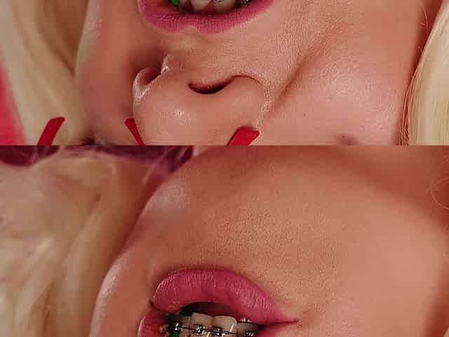 Food fetish: eating video latex blonde girl