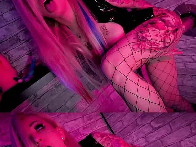 Latex and fishnet clad busty chick Adele loves doggy style!