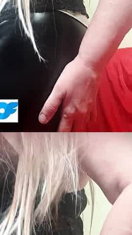 Kinky golden-haired chick is wearing a ebony, latex dress during the time that posing and teasing on web camera