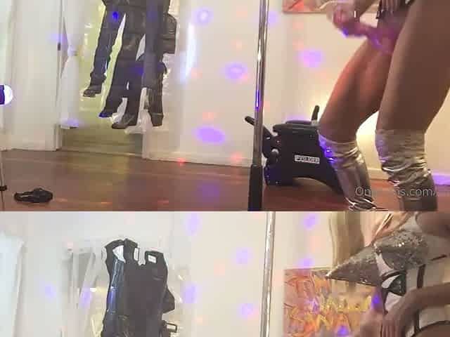 Latex boots fit perfectly on the blonde milf with big tits who craves anal sex