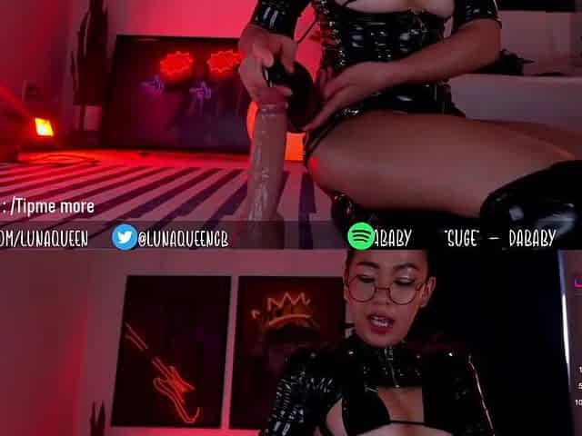 Sweetheart in latex is widening her legs wide open and getting banged in front of the camera