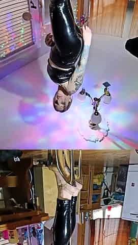 Cindy keeps her haunch high latex boots on as this babe clutches the pole and rides his rod untill...